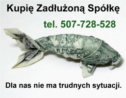 Kupię zadłużoną spółkę z ograniczoną odpowiedzialnością lub akcyjną w absolutnie każdej sytuacji: finansowej , księgowej , leasingowo, kredytowej , pracowniczej , sądowej , upadłości, likwidacji , dla nas nie ma trudnych sytuacji . Notarialne odkupienie udziałów, akcji ,zmiana zarządu , siedziby oraz nazwy dzwoń już teraz tel. 507-728-528
