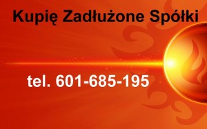 | Kupię zadłużoną spółkę z o.o. SA , GMBH , Ltd ,sro , z całej europy , z zadłużeniem wobec Zus , Us , Banków , Dostawców krajowych i zagranicznych , w upadłości , krytycznie zadłużone , z niskim kapitałem , z zagubionym majątkiem , zagubioną dokumentacją , Absolutnie każde , przejęcie następuje w formie Aktu Notarialnego , jak również zmiana siedziby oraz zarządu , na życzenie klienta zmieniamy także nazwę spółki tel. 0-601-685-195 DZWOŃ 24/h 7 DNI W TYGODNIU |