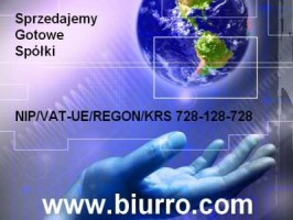 Jeśli zależy Ci na pominięciu masy formalności, która związana jest z procesem założenia działalnosci - Zadzwoń! Oferowane przez nas Spółki spełniają wszelkie aspekty formalne, które umożliwiają podjęcie działalności w dniu ich nabycia. W Naszej ofercie znajdziesz bogaty wybór czystych spółek w cenie od 3500 zł z lat od 1991-2015 roku. tel. 728-128-728 www.biurro.com